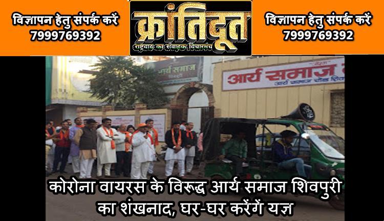 कोरोना वायरस के विरूद्ध आर्य समाज शिवपुरी का शंखनाद, घर-घर करेंगें यज्ञ